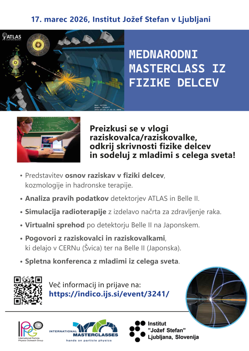 Delavnice »International Masterclasses« srednješolcem ponujajo edinstveno priložnost, da sami vstopijo v svet kvarkov in leptonov. Udeleženci bodo izvajali meritve na pravih podatkih, izmerjenih pri eksperimentih v CERN-u in drugih raziskovalnih centrih po svetu, se srečali z raziskovalci ter izmenjali rezultate in izkušnje s sovrstniki iz drugih držav.